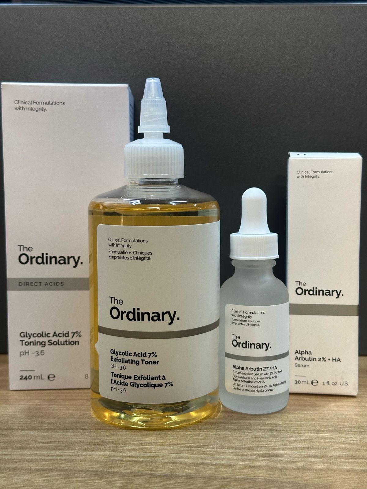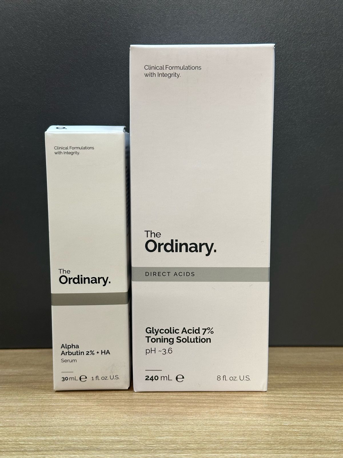 Corrige manchas, unifica el tono y revitaliza tu piel con este combo potente de The Ordinary. El suero de Alpha Arbutin 2% + HA ilumina y atenúa las manchas, mientras el tónico de Glicólico 7% renueva la piel, alisa la textura y potencia el brillo natural. Fórmulas limpias para resultados visibles sin irritación.